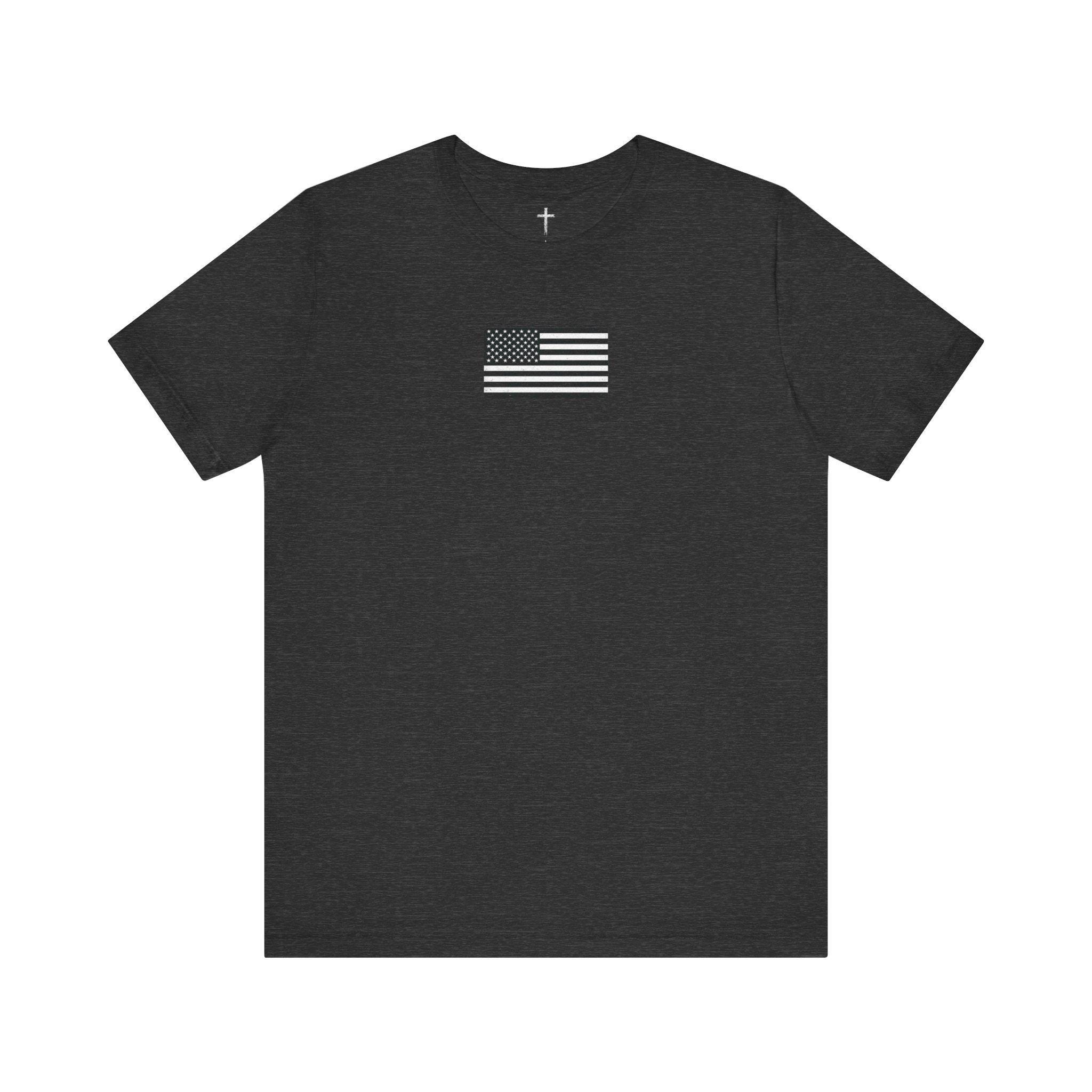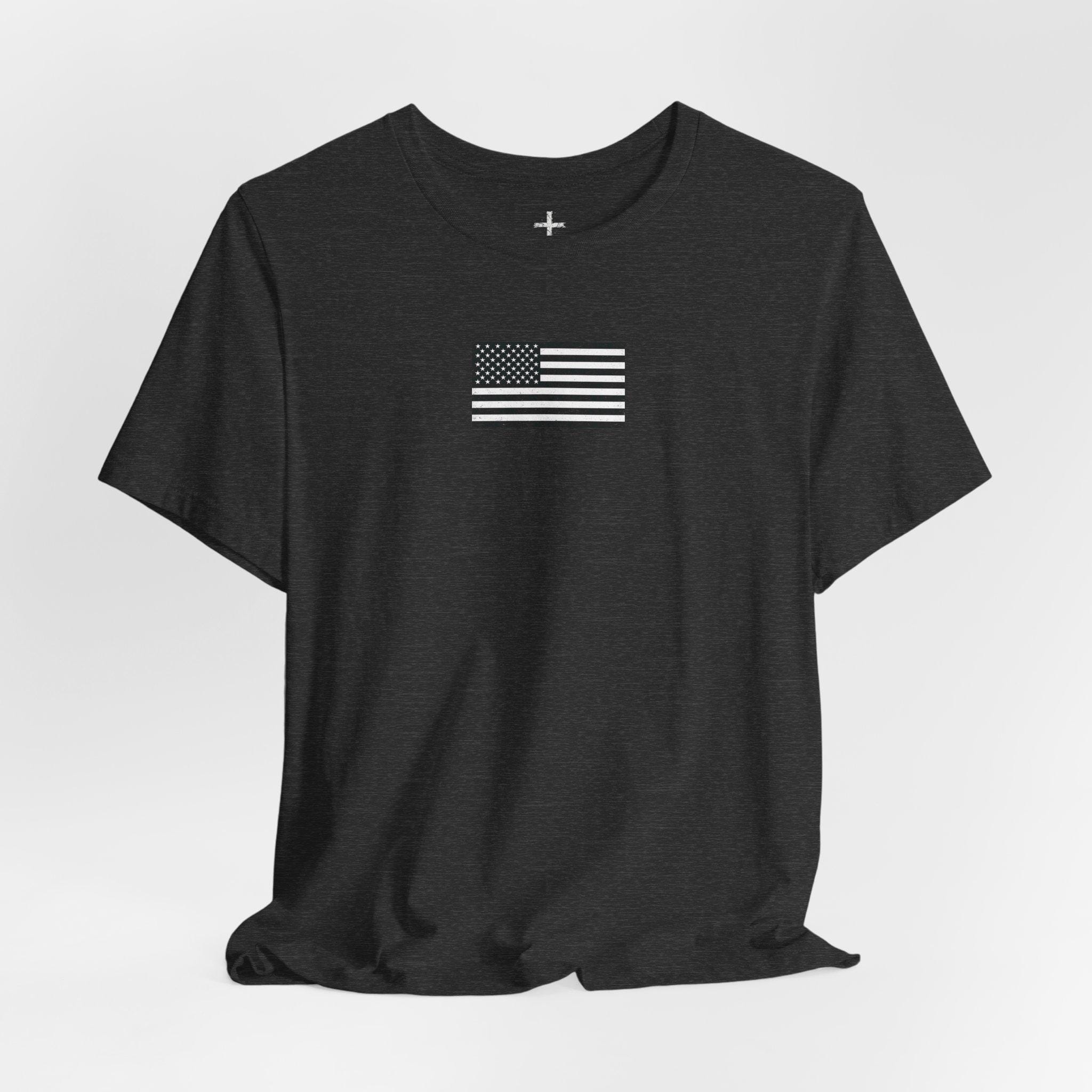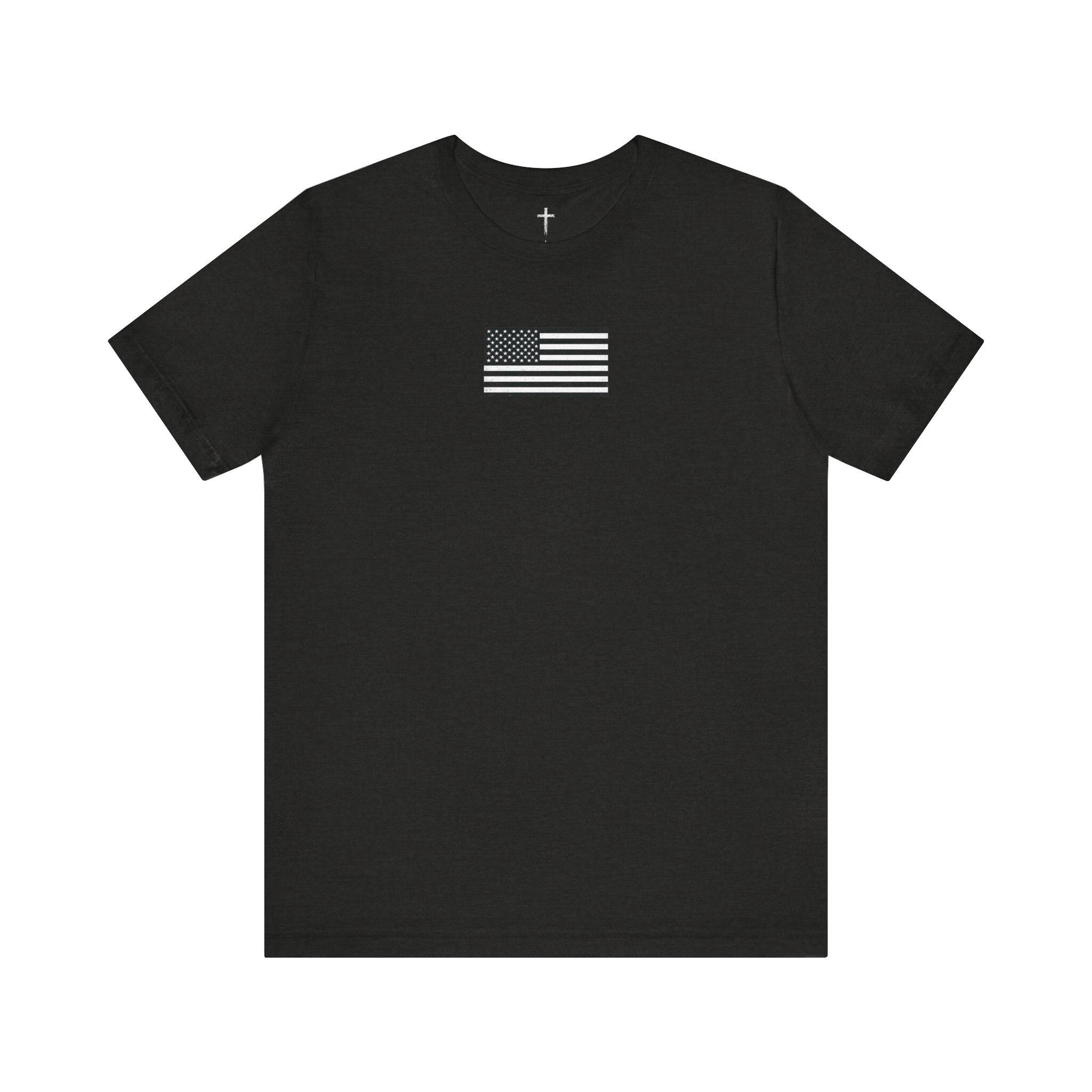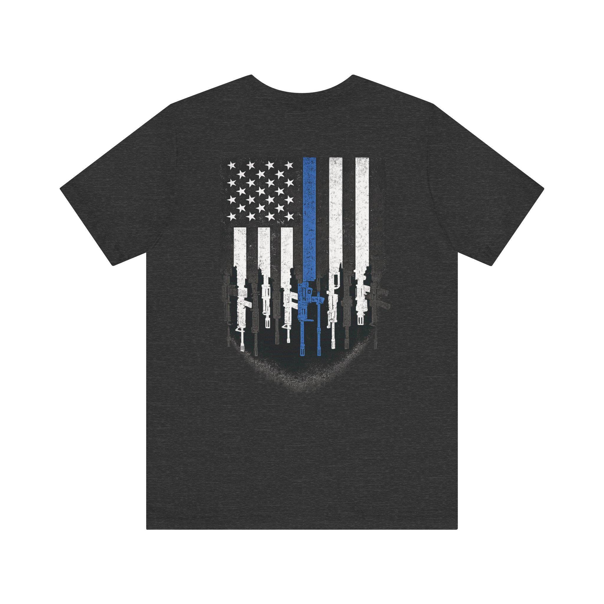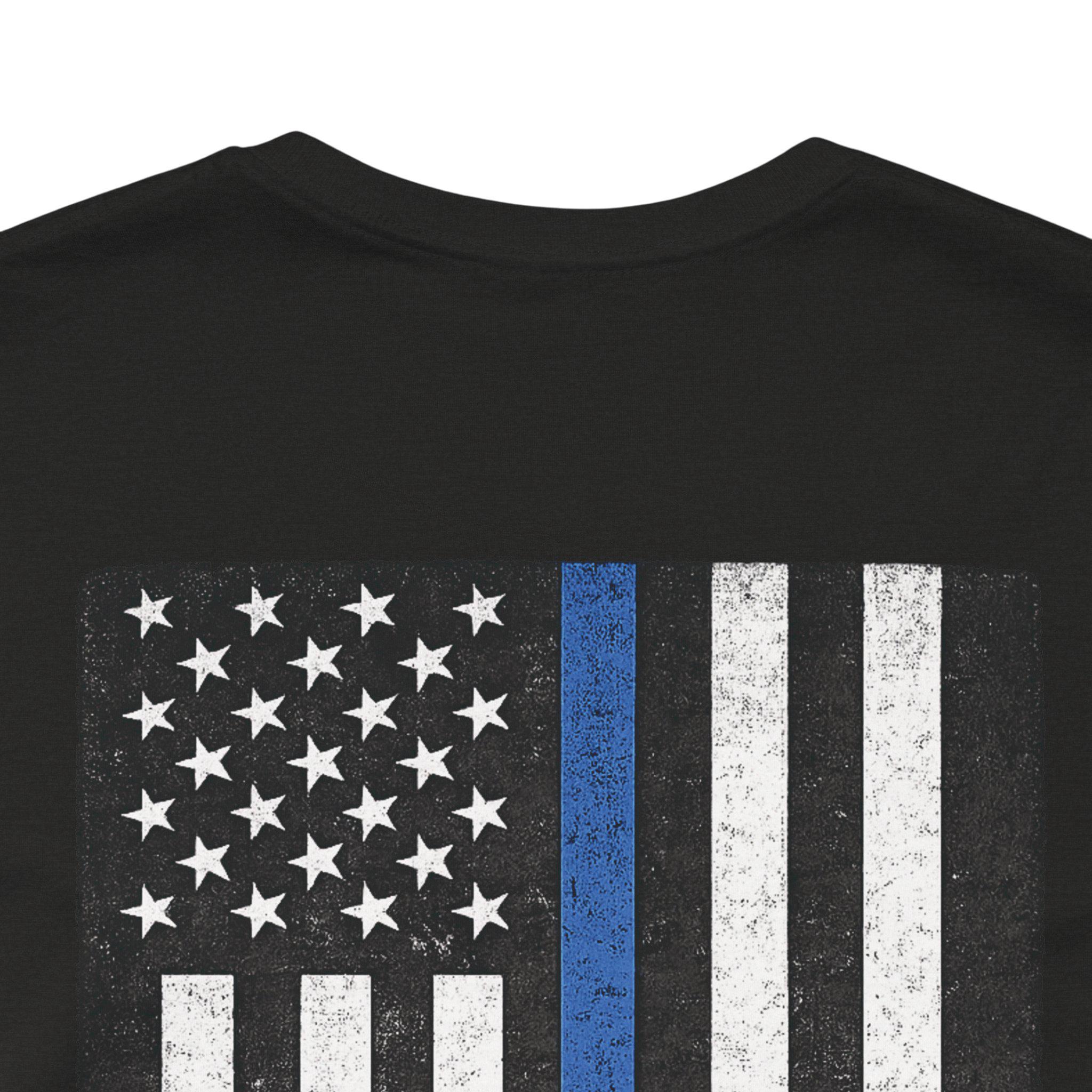 This lightweight jersey tee carries a quiet, resolute look — a small monochrome flag on the chest and a larger distressed flag on the back with a single thin blue line and rifle silhouettes woven into the stripes. It feels like the kind of shirt someone reaches for when they want to show steady support without shouting. The soft Airlume combed cotton sits close to the skin, breathes easily, and layers cleanly under jackets or over hoodies. Thoughtful details — side seams for shape, a ribbed collar, shoulder tape and a tear-away label — keep it comfortable through long shifts, weekend meetups, or neighborhood rides. Ethically produced and REACH certified, this tee blends everyday wearability with a considered, respectful design that resonates with those connected to law enforcement and first-responder communities.