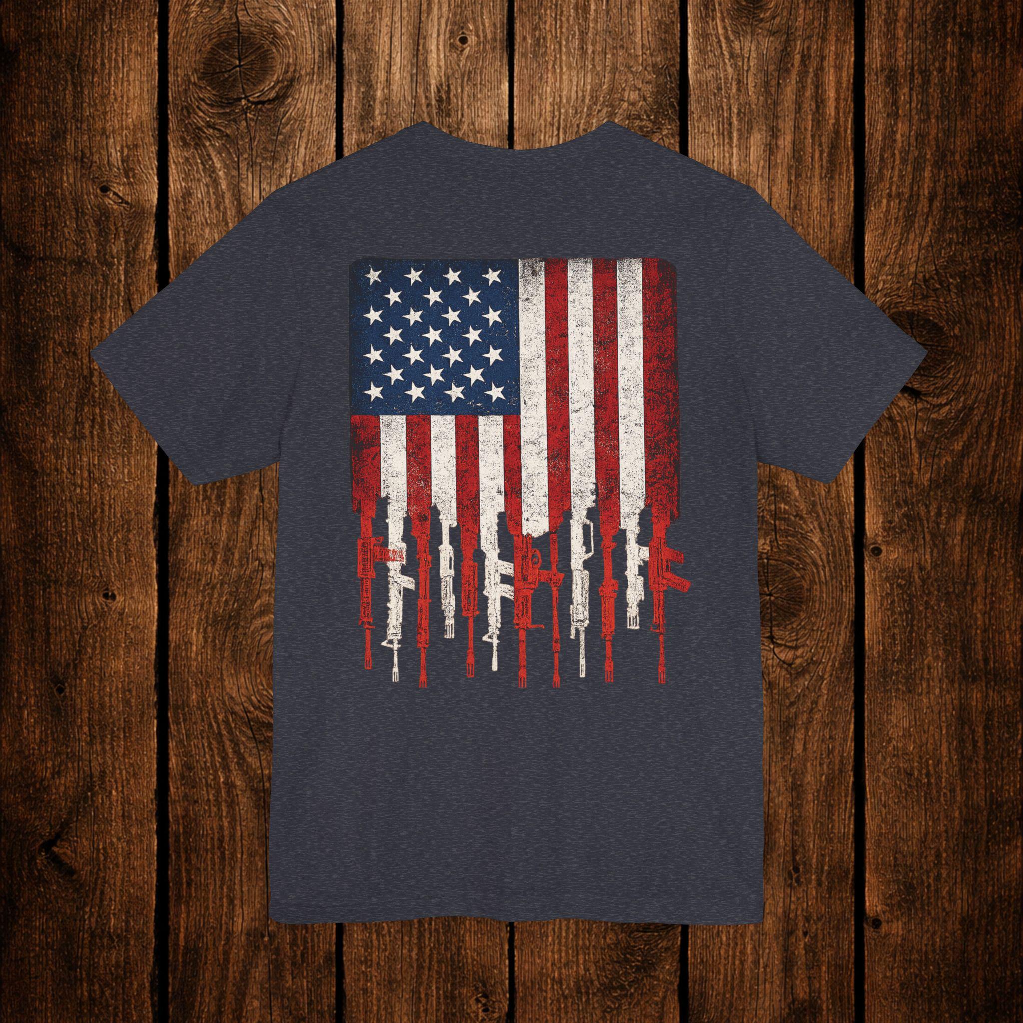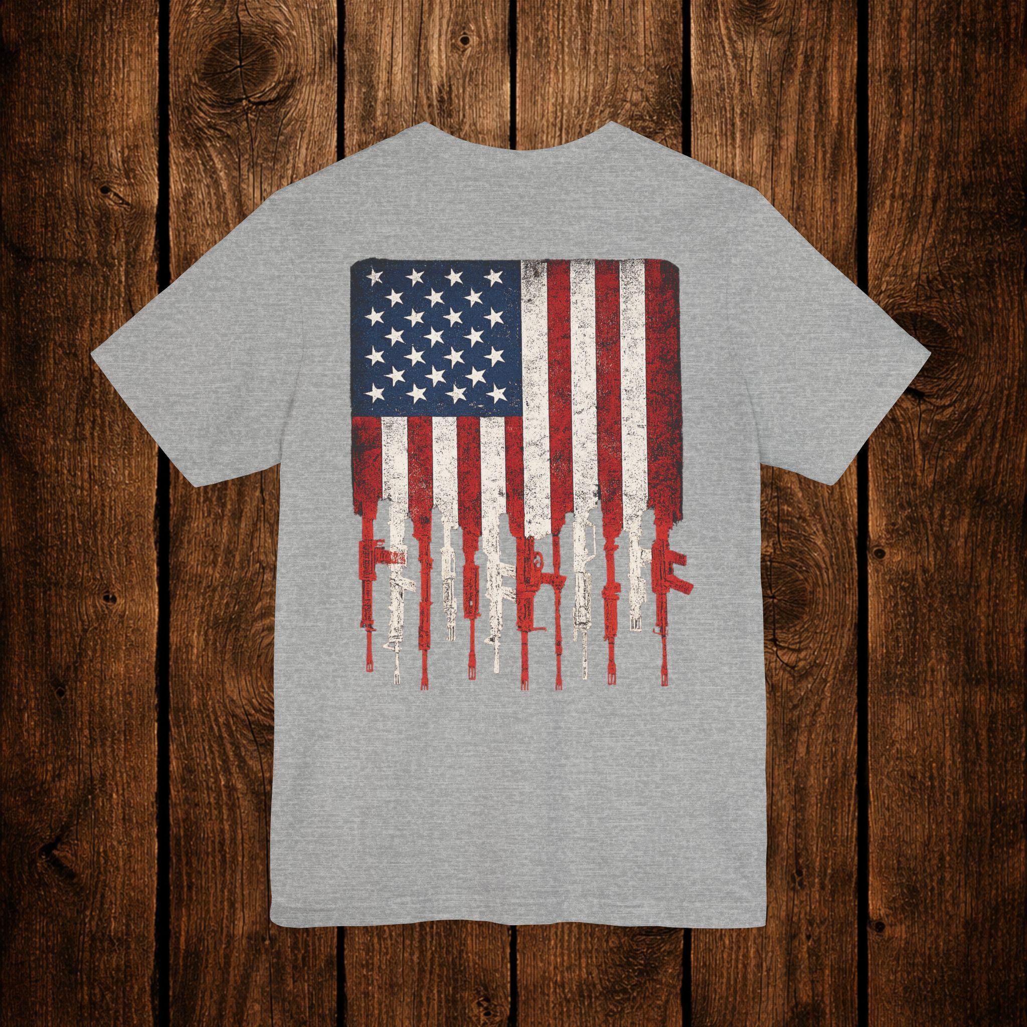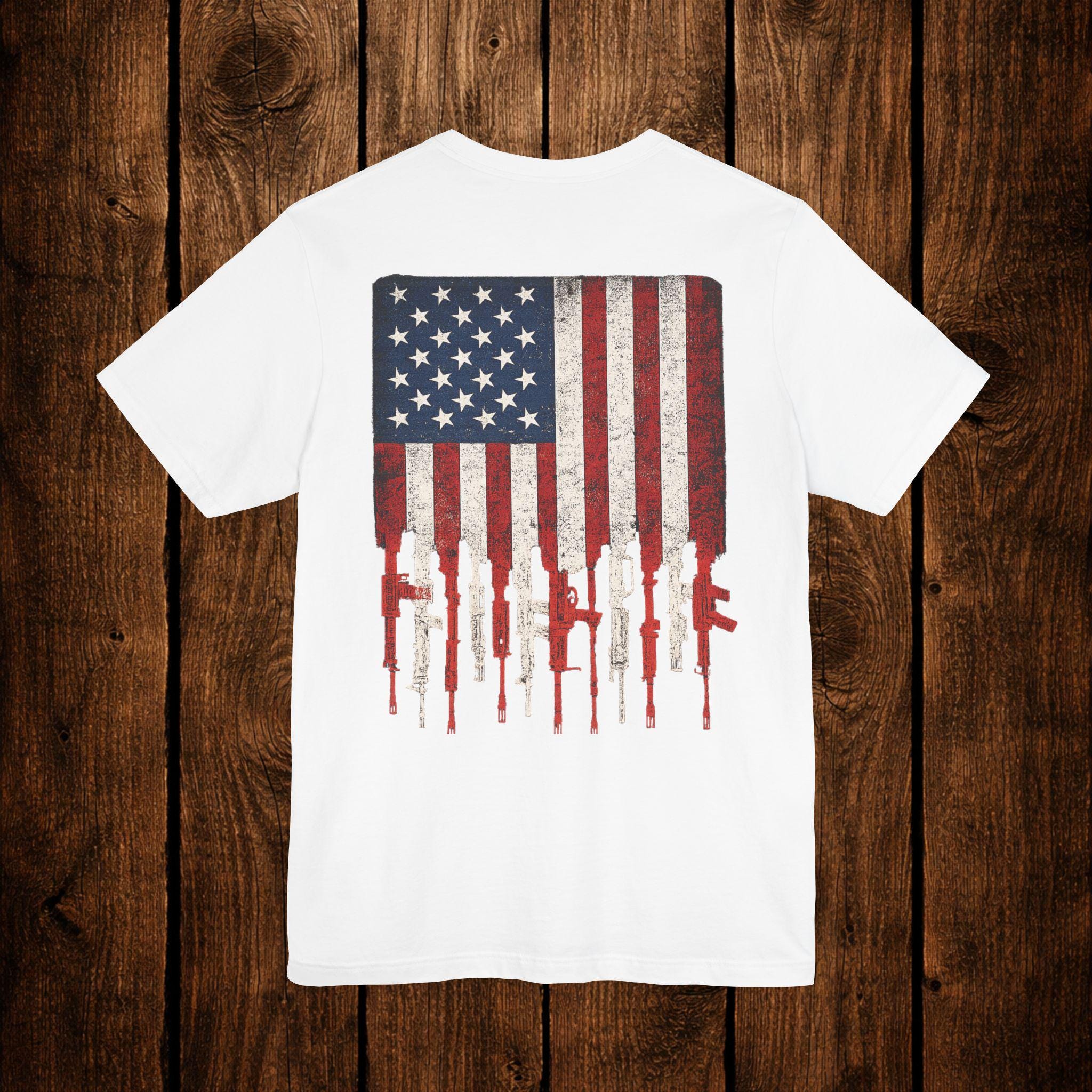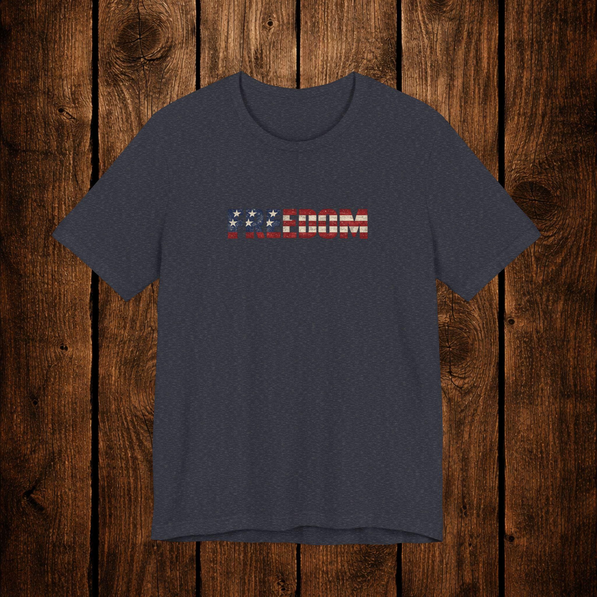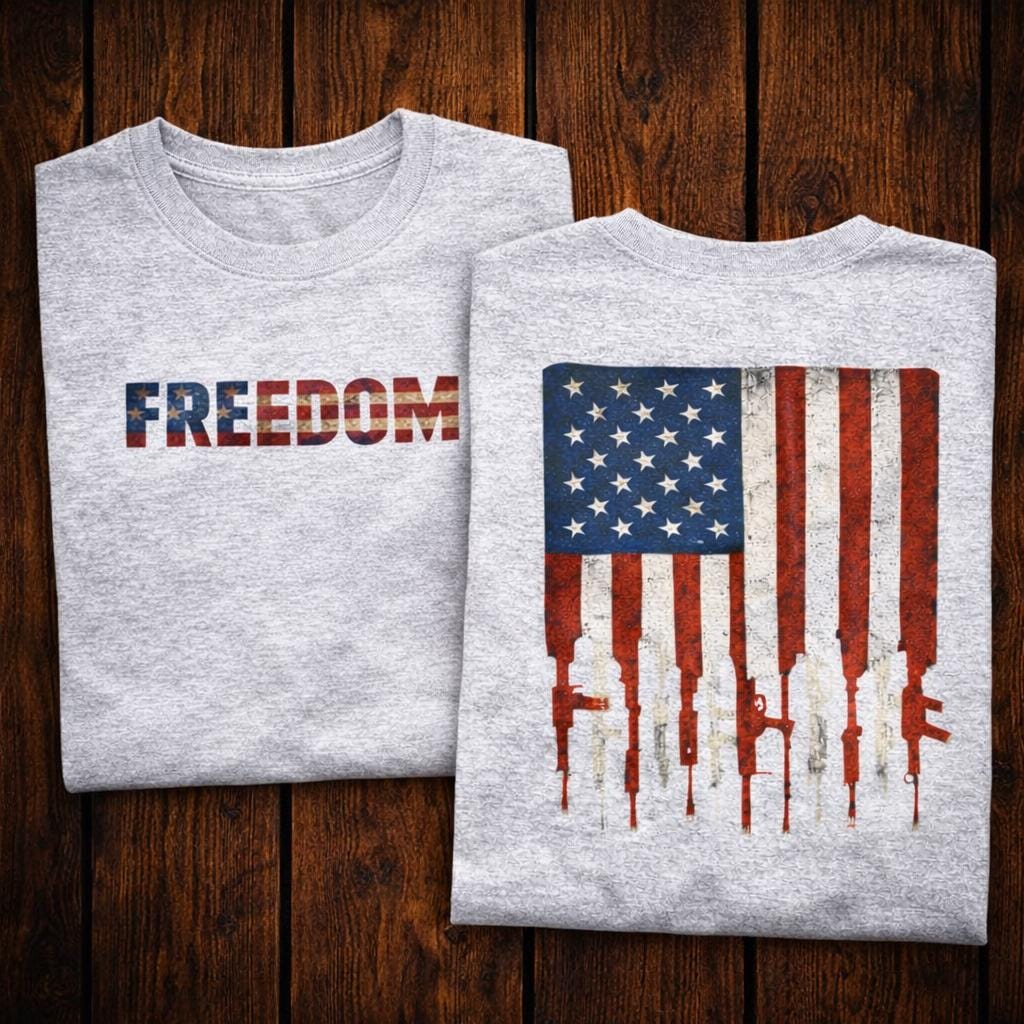 Wear your Patriotism, with this Premium, Bella Canvas, Light, breathable, and honest tee. — this tee speaks quietly but confidently. The front carries a distressed, star-spangled “FREEDOM” across the chest; the back shows a weathered American flag that melts into bold, military-inspired silhouettes. Wear it when you want to show steady pride without shouting. It layers easily under jackets for dawn hikes, sits comfortable at backyard cookouts, and moves with you during weekend projects. The soft Airlume cotton feels lived-in from the first wear, and details like the ribbed collar, shoulder tape, and side seams keep the shape steady through many washes. Ethically made and REACH certified, this shirt fits into a life that values craftsmanship, comfort, and understated patriotism.