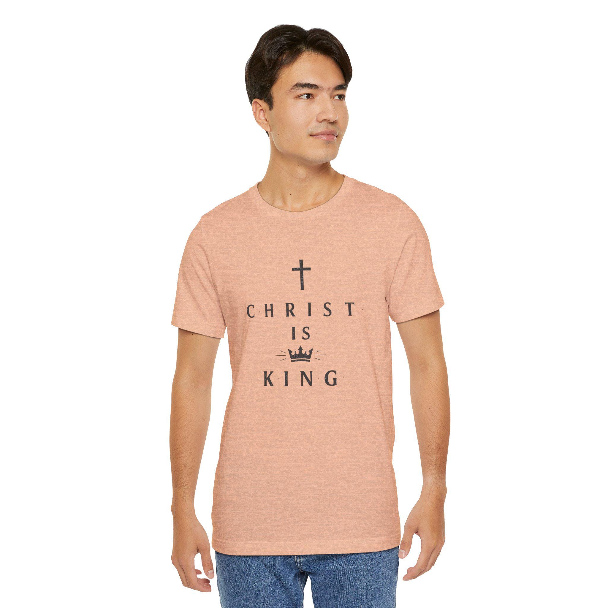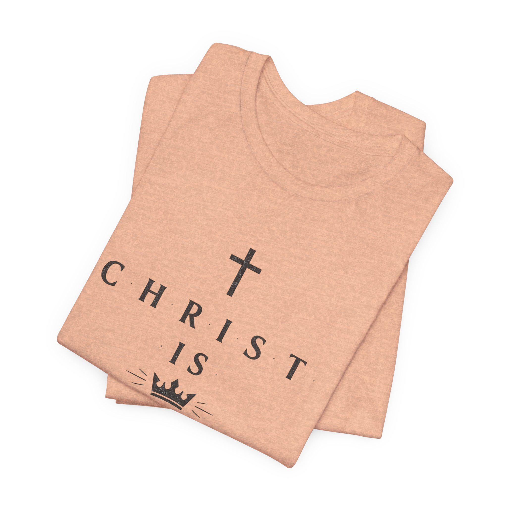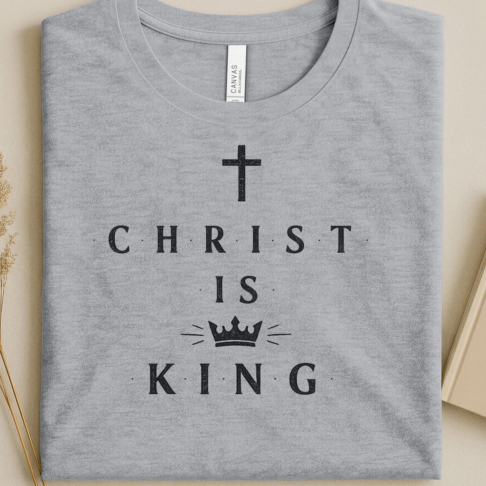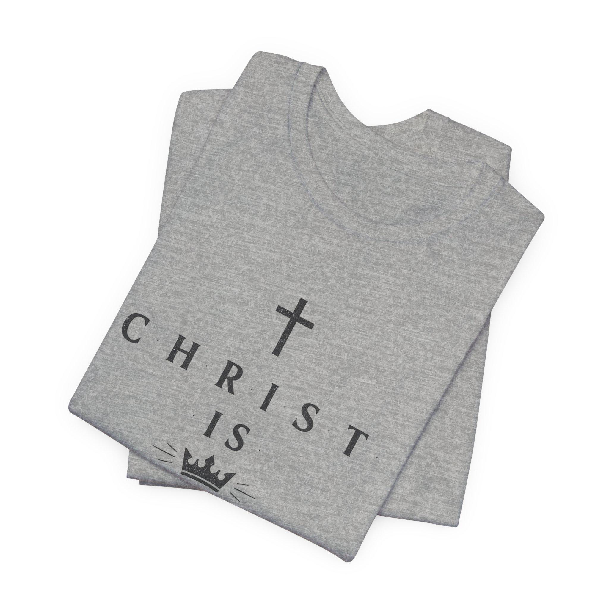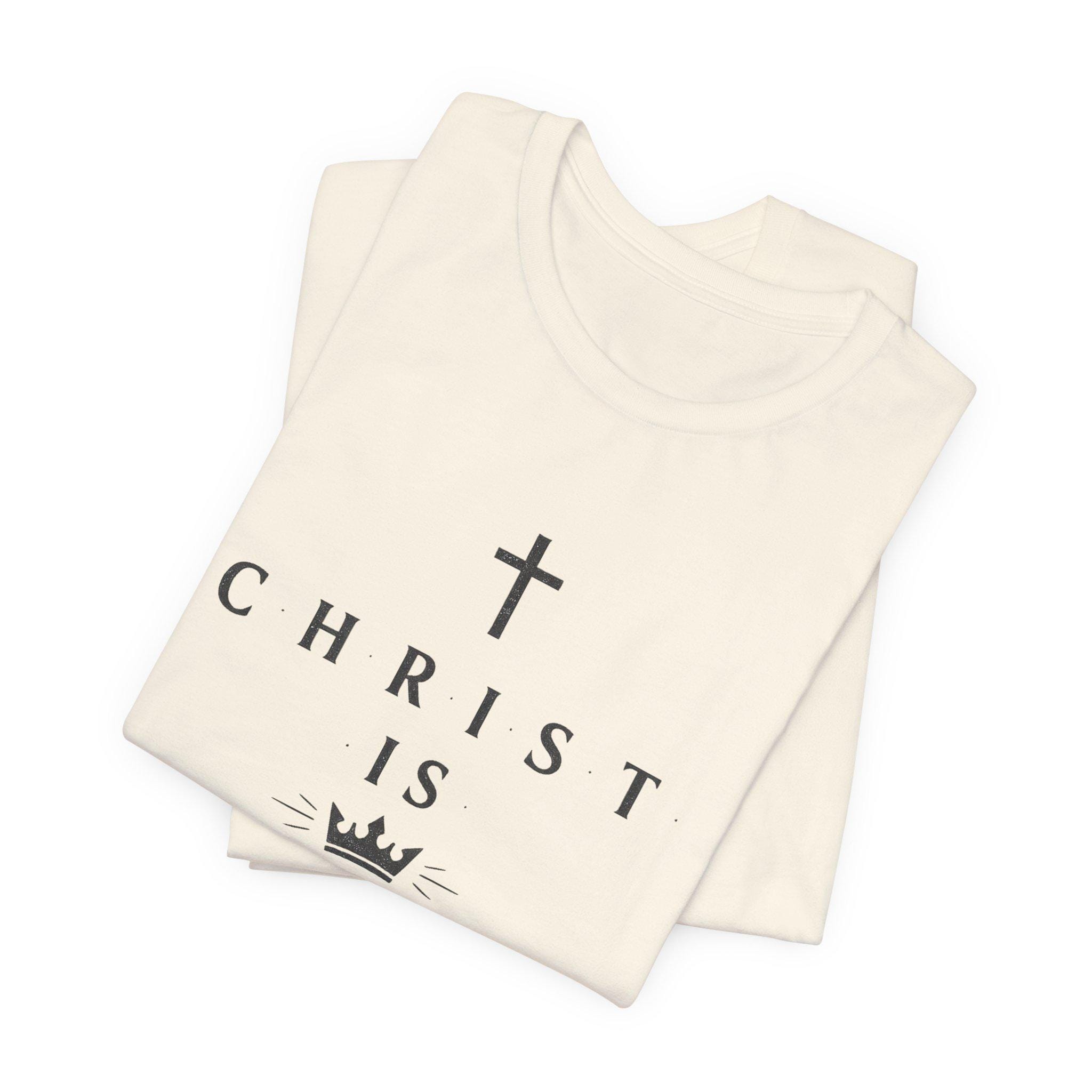 Lightweight, clean, and quietly bold — this tee carries a calm declaration of faith in classic, minimalist style. A simple cross and crown frame the words “CHRIST IS KING,” printed in refined, serif lettering that reads like a small, wearable statement of devotion rather than loud branding. The soft, breathable cotton feels gentle against the skin and layers easily under a jacket or over a long sleeve on cooler days. Wear it to worship gatherings, neighborhood outreach, or when you want your faith to speak with quiet confidence during everyday moments.