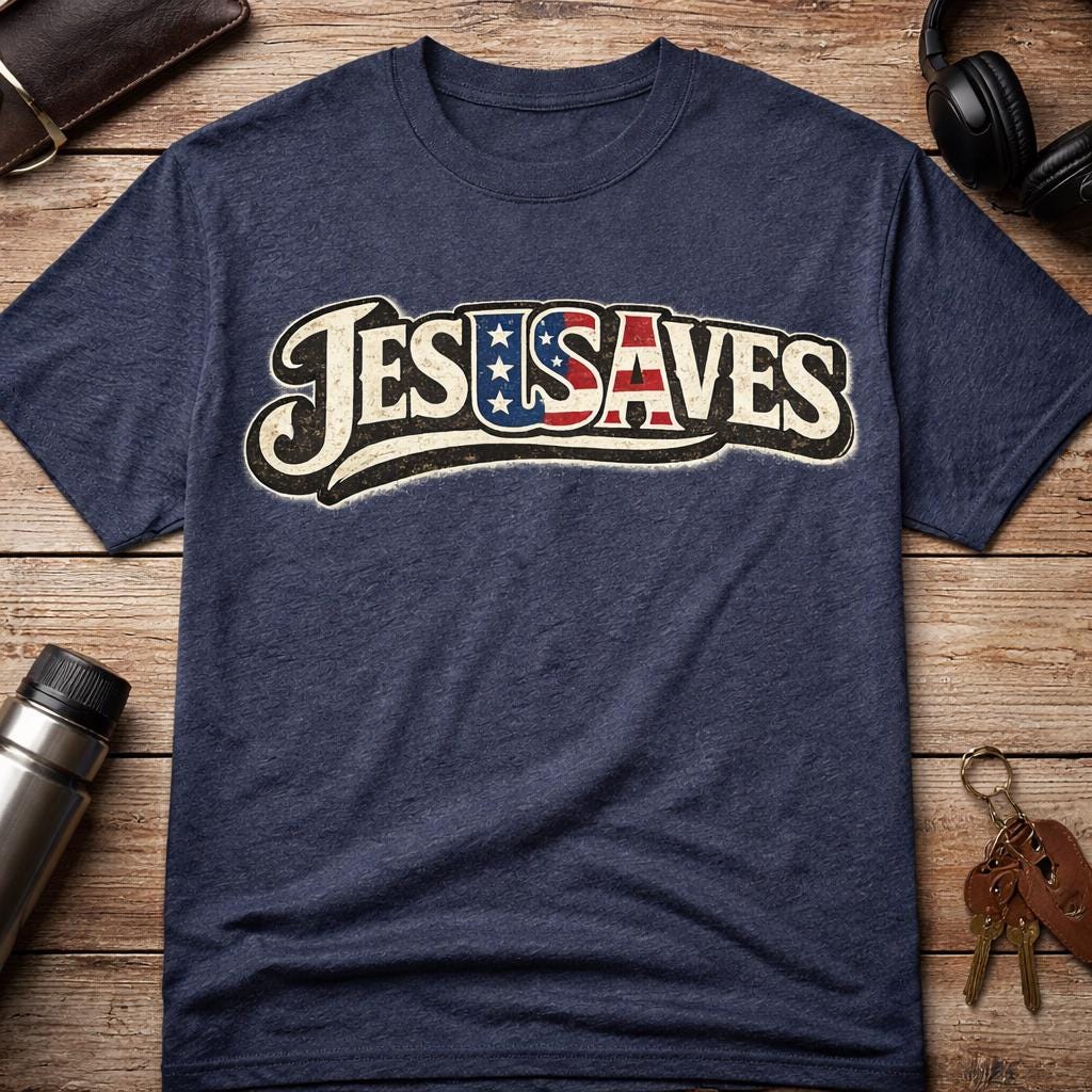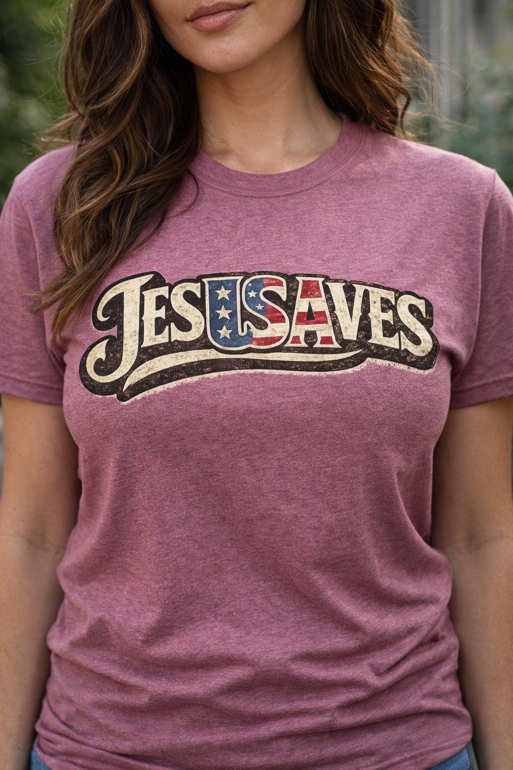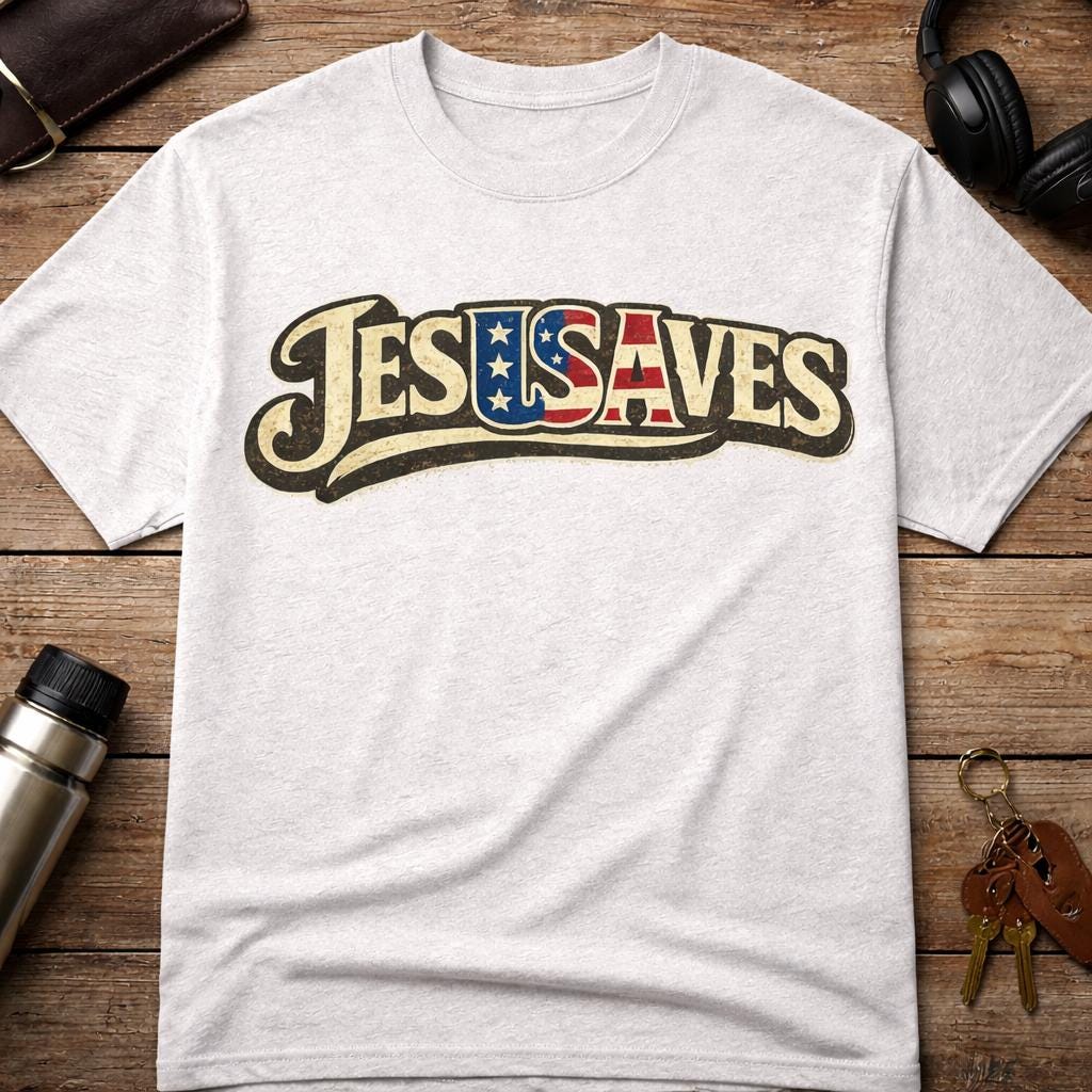 Soft, breathable tee with a vintage-inspired gospel graphic—’JESUS SAVES’ rendered in warm, worn colors with an American flag motif inside the lettering. Lightweight Airlume cotton keeps you comfortable during Sunday service, volunteer shifts, or casual days out. The retail fit and crew neckline make it easy to layer under a jacket or wear alone. Subtle distressing in the print gives the shirt an heirloom feel that blends faith and Americana without shouting. Ethically produced and finished with a tear-away label for comfort.