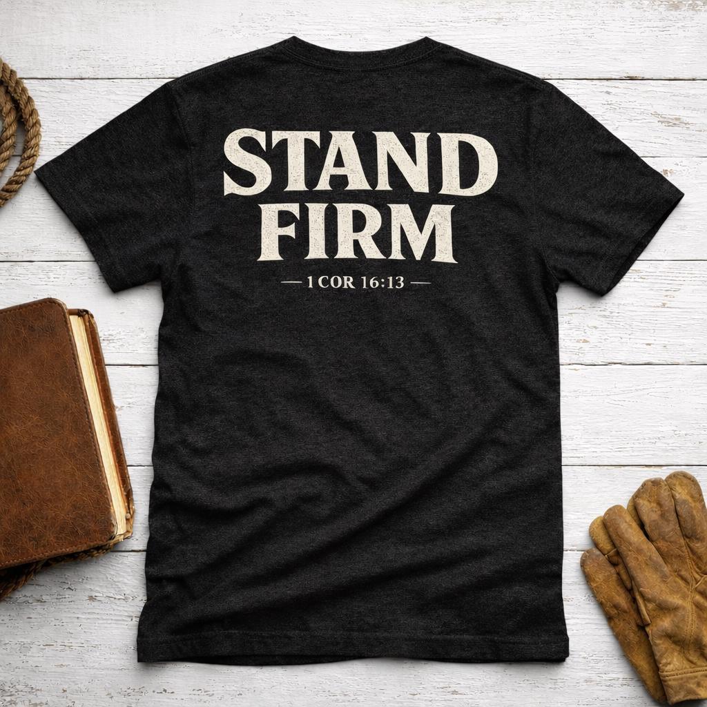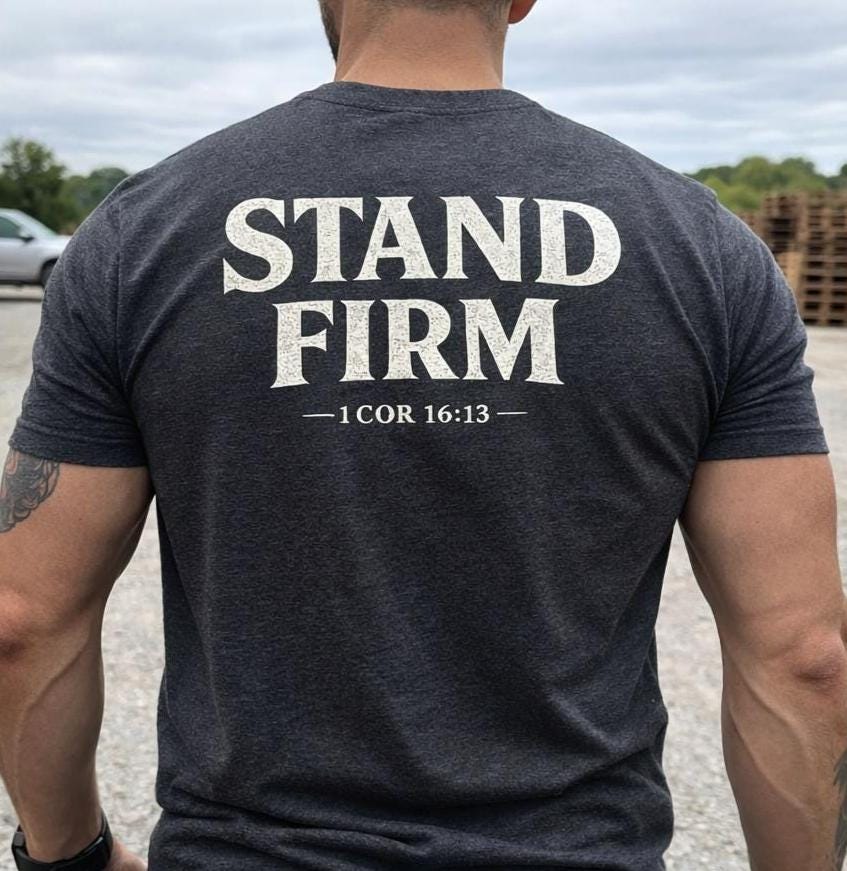 Celebrate your faith with this inspiring Christian Faith T-Shirt featuring the powerful Bible verse 1 Corinthians 16:13. Designed for both men and women, this "Stand Firm" religious tee is the perfect way to showcase your spiritual strength and devotion.