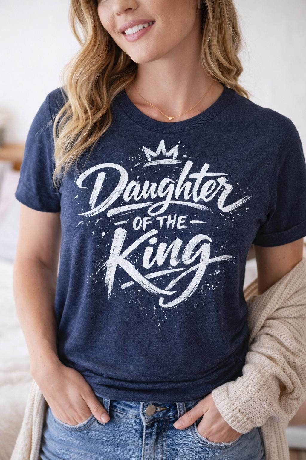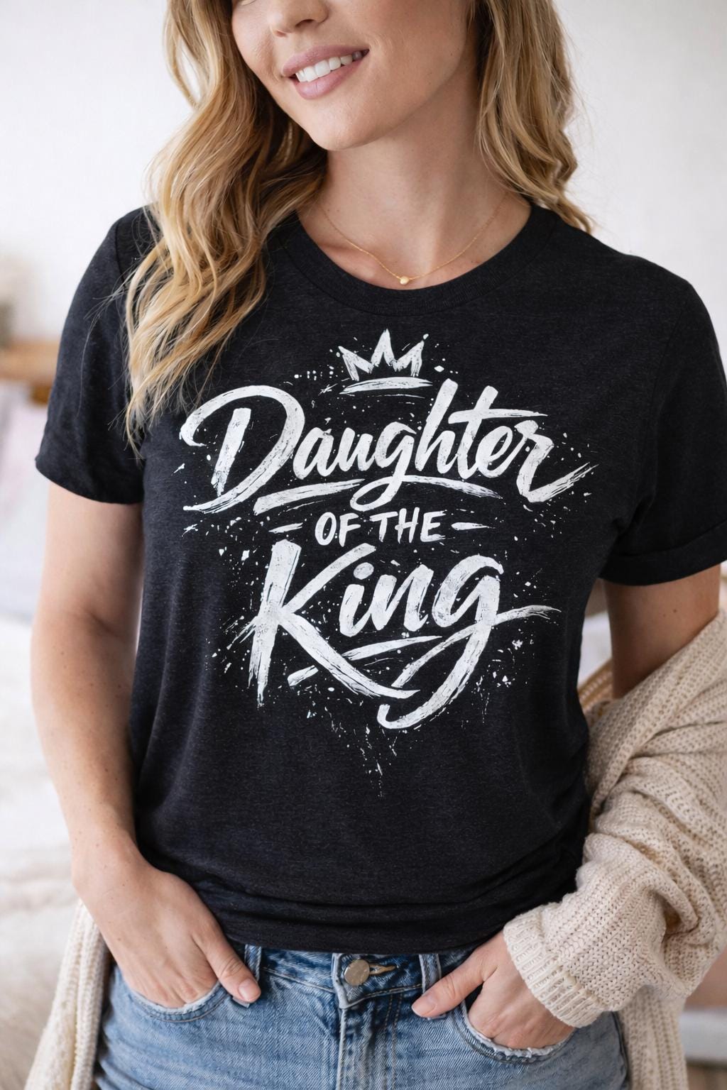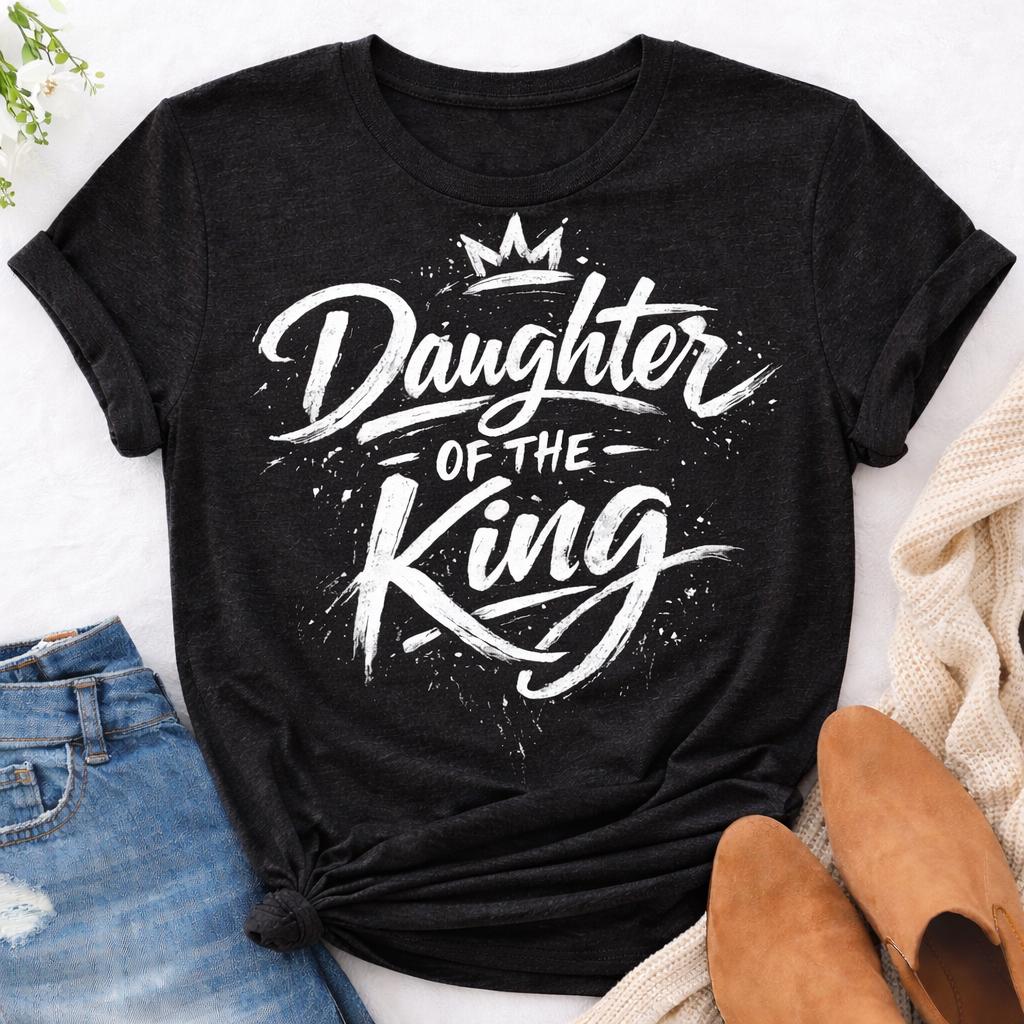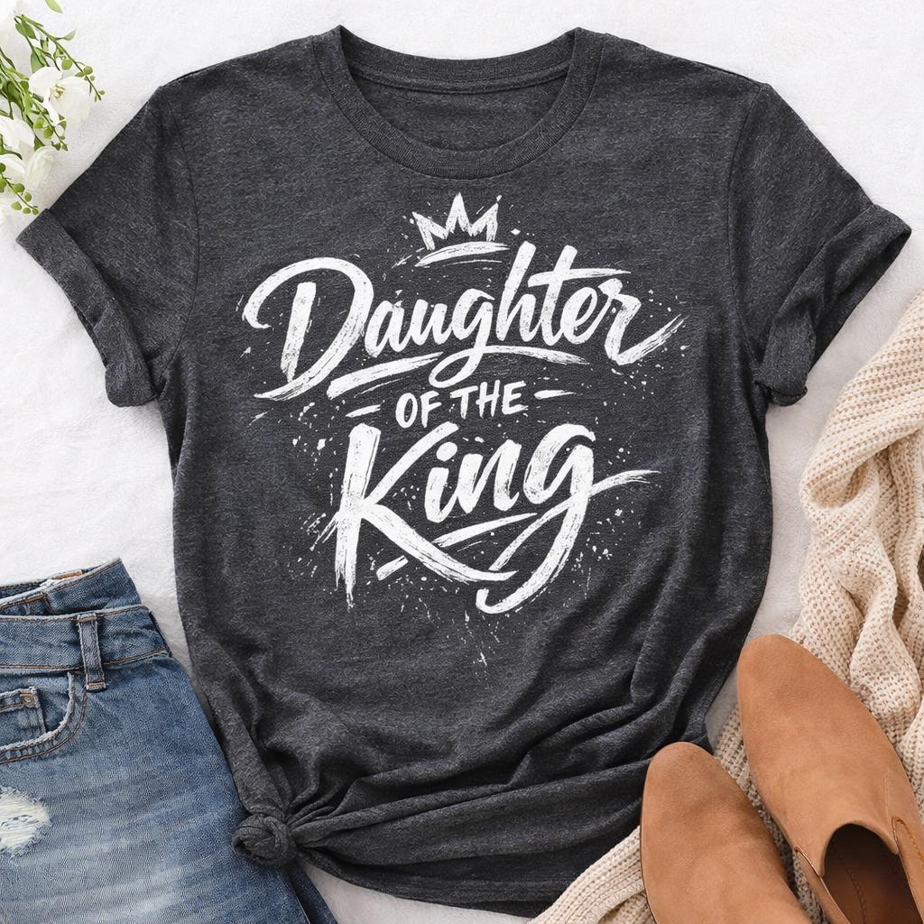 Celebrate your faith with our Daughter of the King Tee! This stylish and comfortable shirt features a beautiful crown design alongside uplifting scripture, perfect for expressing your Christian beliefs. Made from soft, high-quality fabric, this tee is ideal for everyday wear or special occasions. Share your identity as a beloved daughter of the King in a fun and fashionable way. Available in various sizes and colors, it makes a thoughtful gift for fellow believers. Wear your faith boldly!