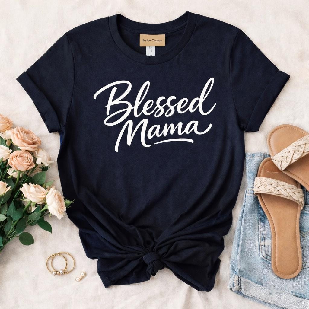 Celebrate the special bond with your mom or the treasured mama in your life with our Blessed Mama T-Shirt. Perfect for Mother's Day gifts, this cozy and stylish tee is a heartfelt way to show appreciation. Made from soft, breathable fabric, it's ideal for everyday wear or casual outings. Whether she's running errands or enjoying a day out, this gift t-shirt will remind her just how loved she is. Treat the amazing moms in your life with a thoughtful gift they can cherish!
