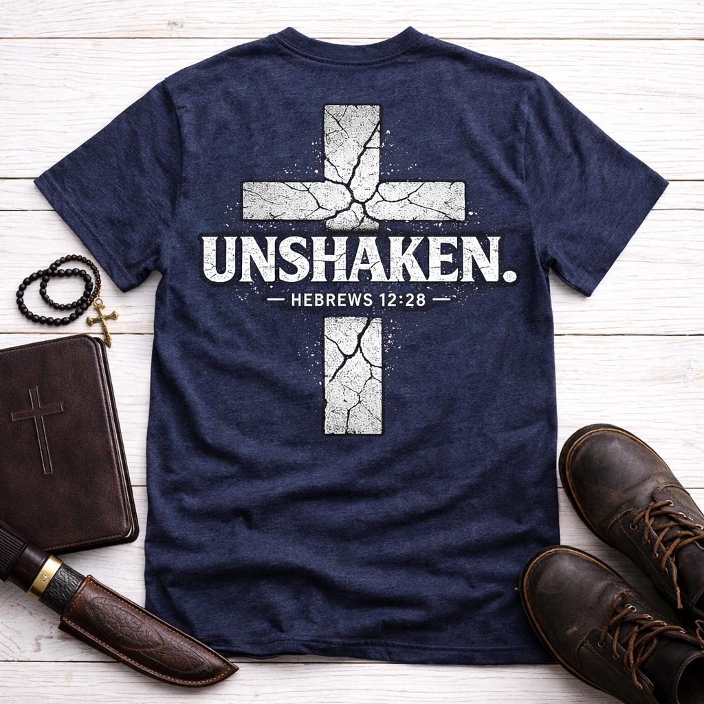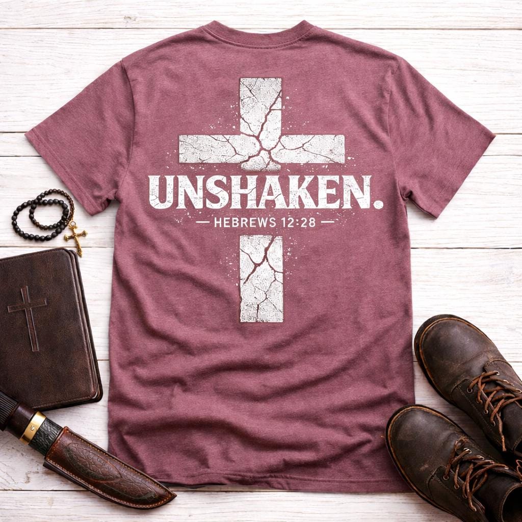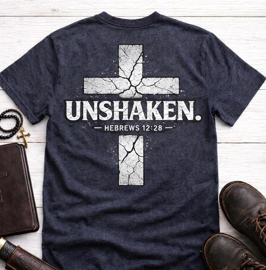 Introducing our Unshaken Cross Tee, inspired by Hebrews 12:28! This beautifully designed Christian shirt serves as a reminder of our faith and strength. Made from soft, breathable fabric, it ensures all-day comfort while spreading a powerful message. Perfect for church, casual outings, or as a thoughtful gift for loved ones. Available in multiple sizes and colors to fit your style. Wear your faith proudly—grab your Unshaken Cross Tee today and stand firm in your beliefs!