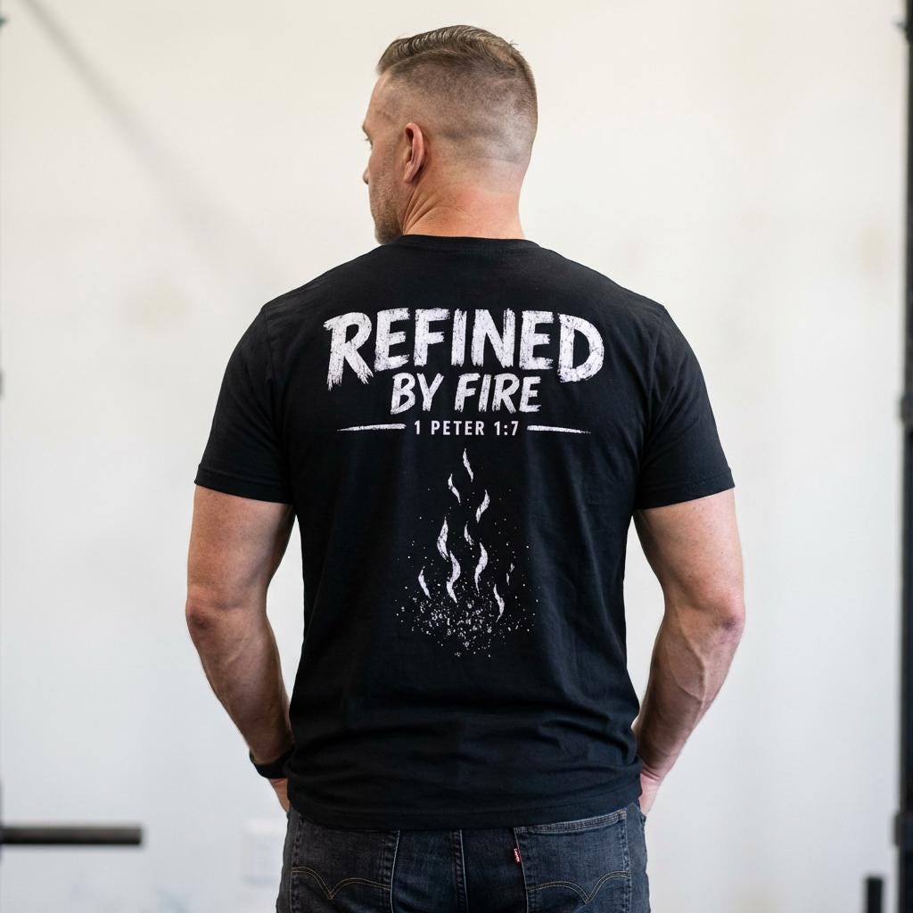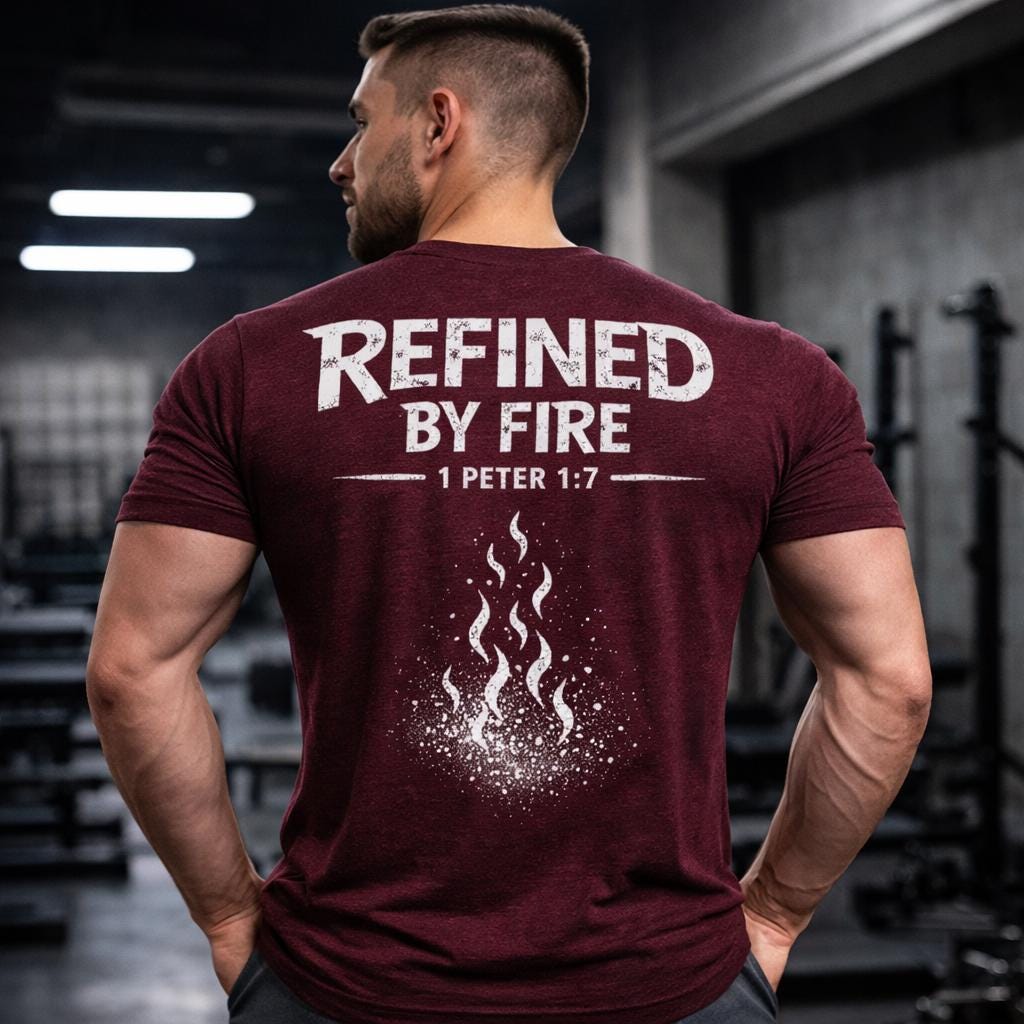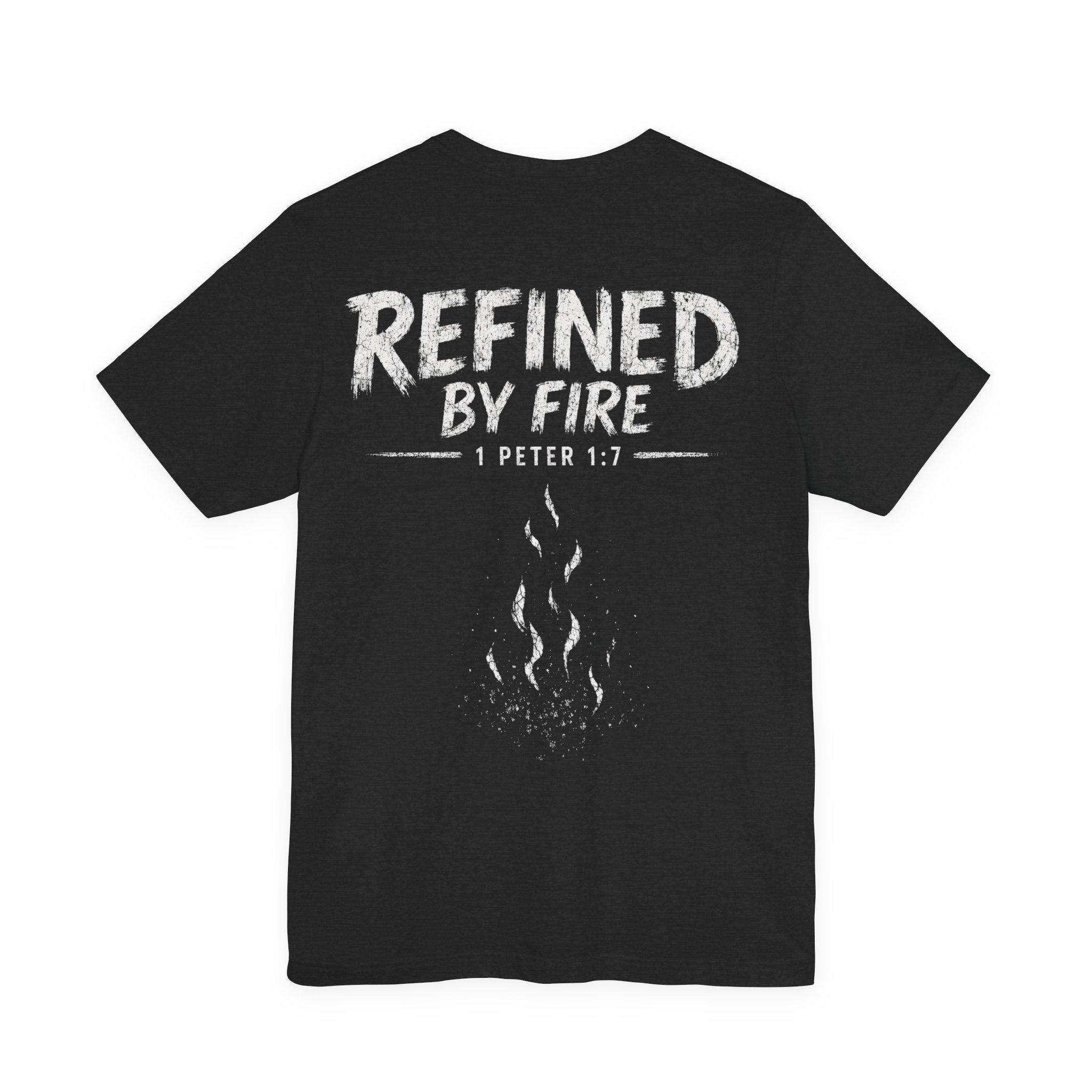 Celebrate your faith and resilience with our Refined By Fire T-Shirt, featuring the inspiring scripture from 1 Peter 1:7. This Christian scripture tee is crafted from premium Bella Canvas cotton, making it soft, breathable, and comfortable for everyday wear. Its stylish unisex fit ensures it looks great on everyone, whether you're heading to church, casual outings, or sharing your faith with friends.