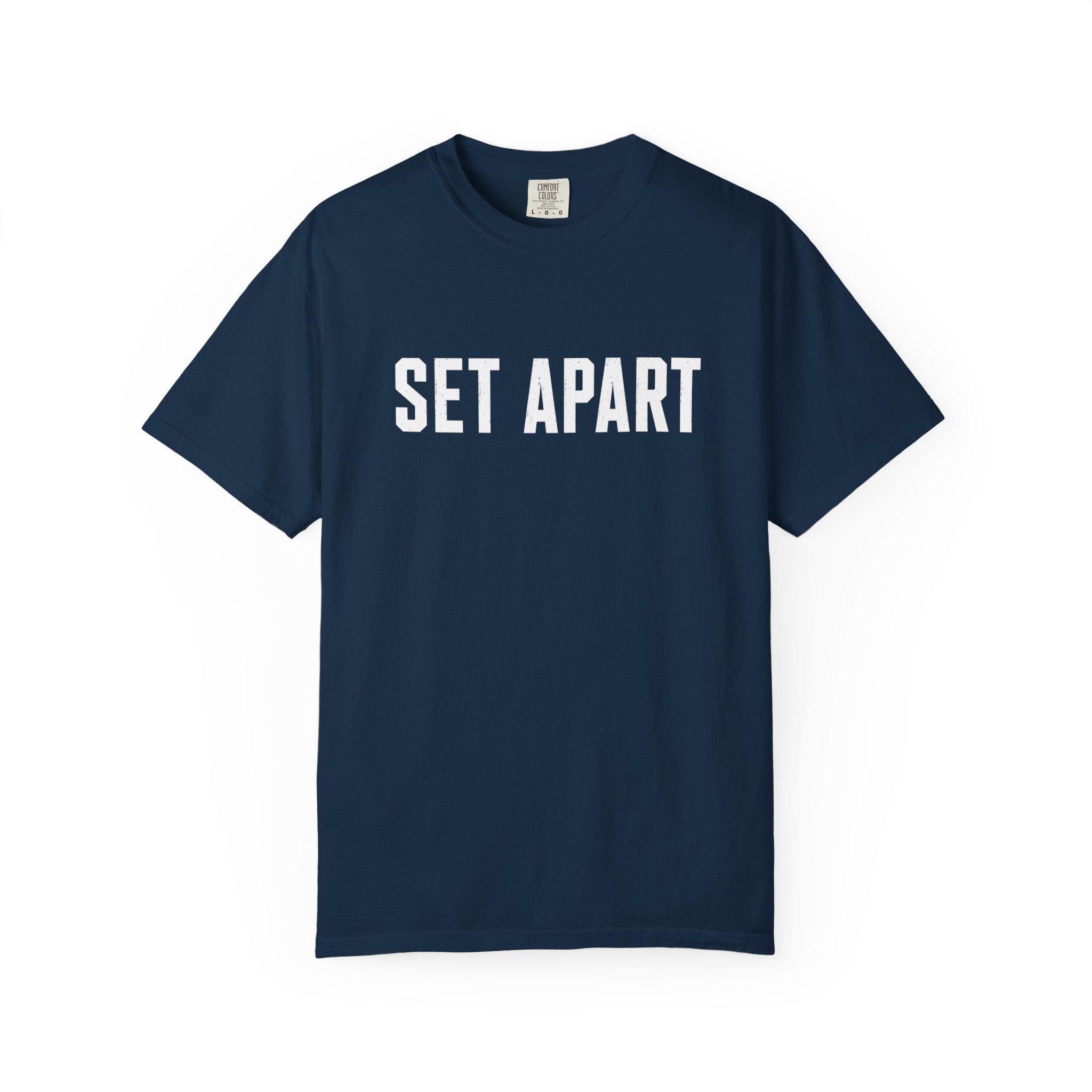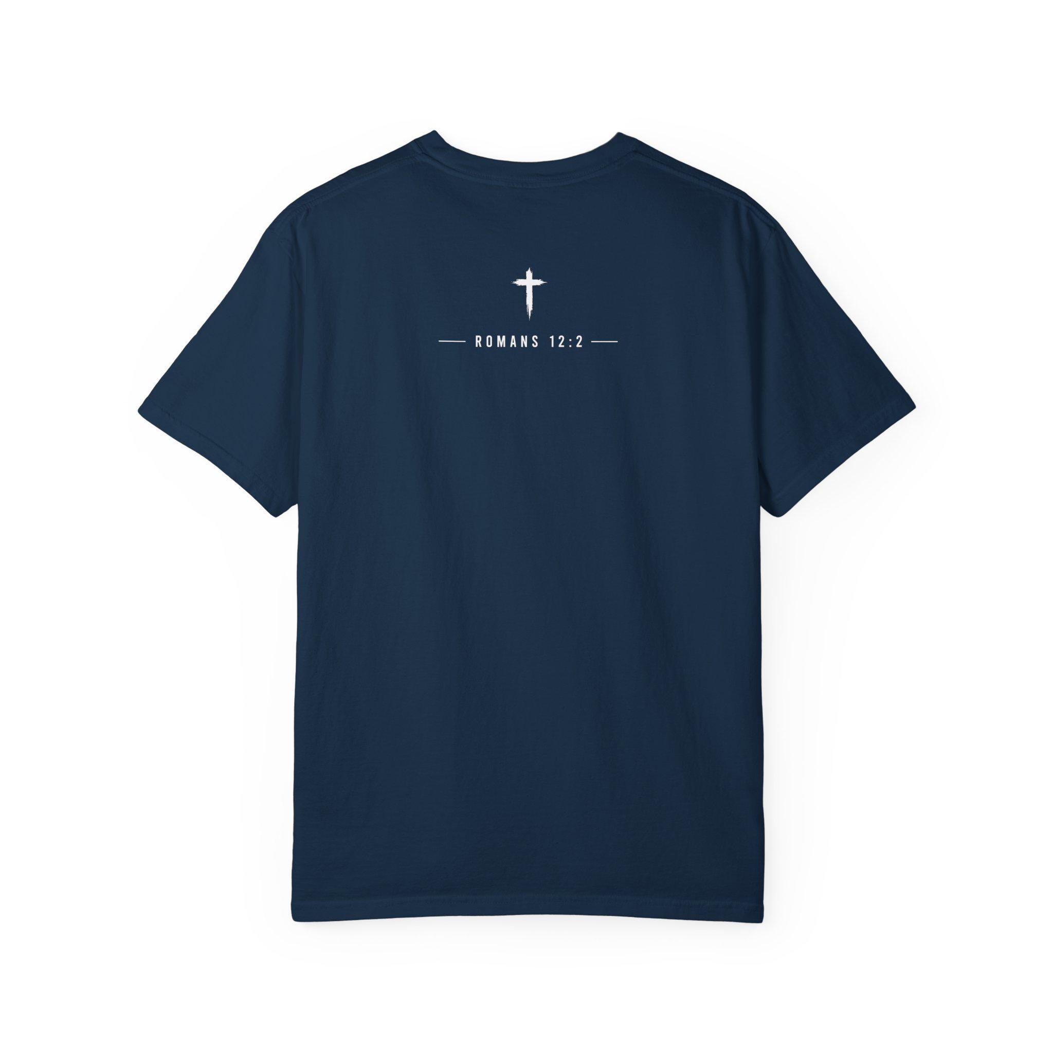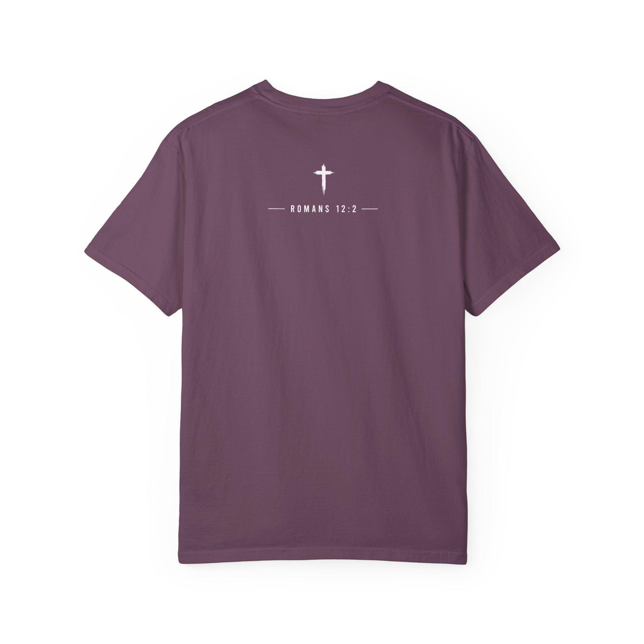 A soft, garment-dyed tee that carries a quiet, confident message. This relaxed-fit shirt drapes comfortably thanks to heavyweight ring-spun cotton and a pre-shrunk, tubular knit that feels lived-in from the first wear. The front shows a bold, block-letter statement while the back offers a small, reverent cross with a scripture reference—subtle faith-forward details that read like a personal reminder rather than loud branding. Wear it to small group meetings, morning coffee with friends, or volunteer days when you want clothing that speaks your values without shouting. The muted, washed color and sewn-in label make it feel like a trusted favorite you'll reach for again and again.