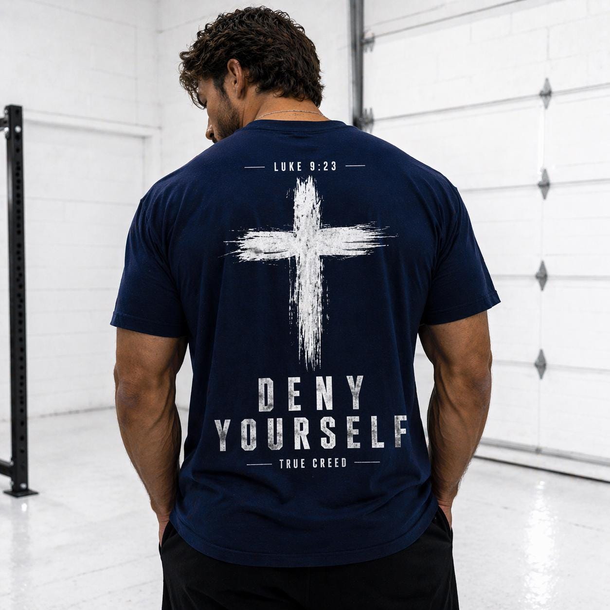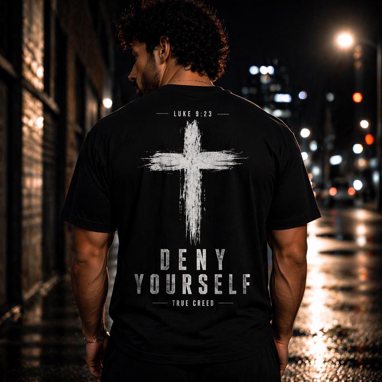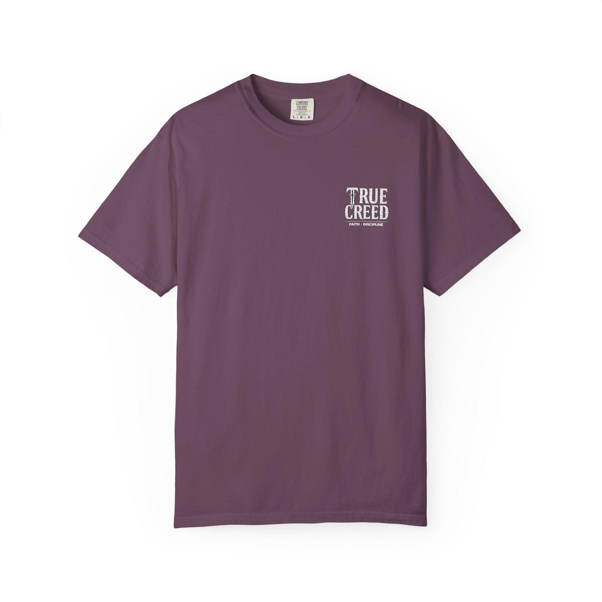 Designed with a relaxed fit and eye-catching graphic of a prominent cross, this shirt features the inspiring words "Deny Yourself" and "True Creed," making it a thoughtful gift for friends and family who want to express their faith confidently. Whether you're dressing up or keeping it casual, this versatile tee is an excellent addition to your spiritual wardrobe.