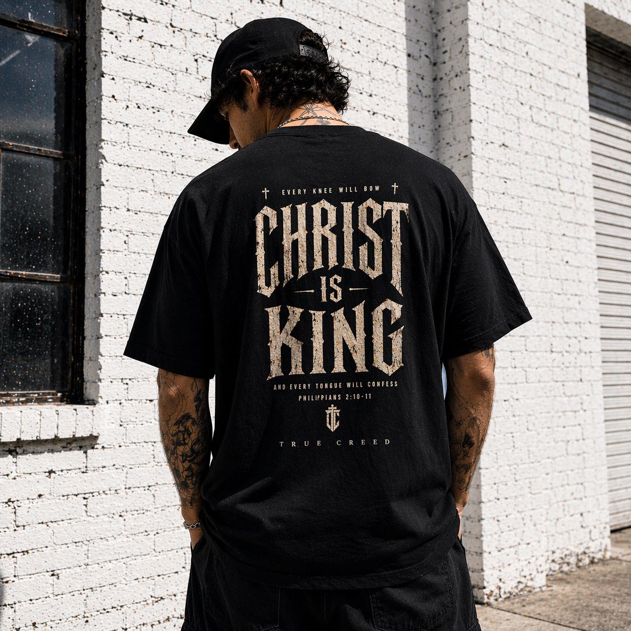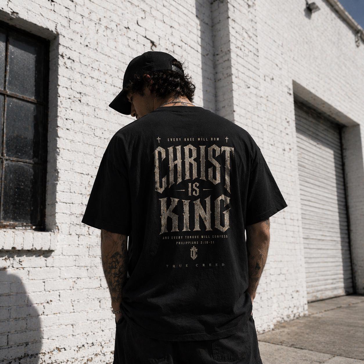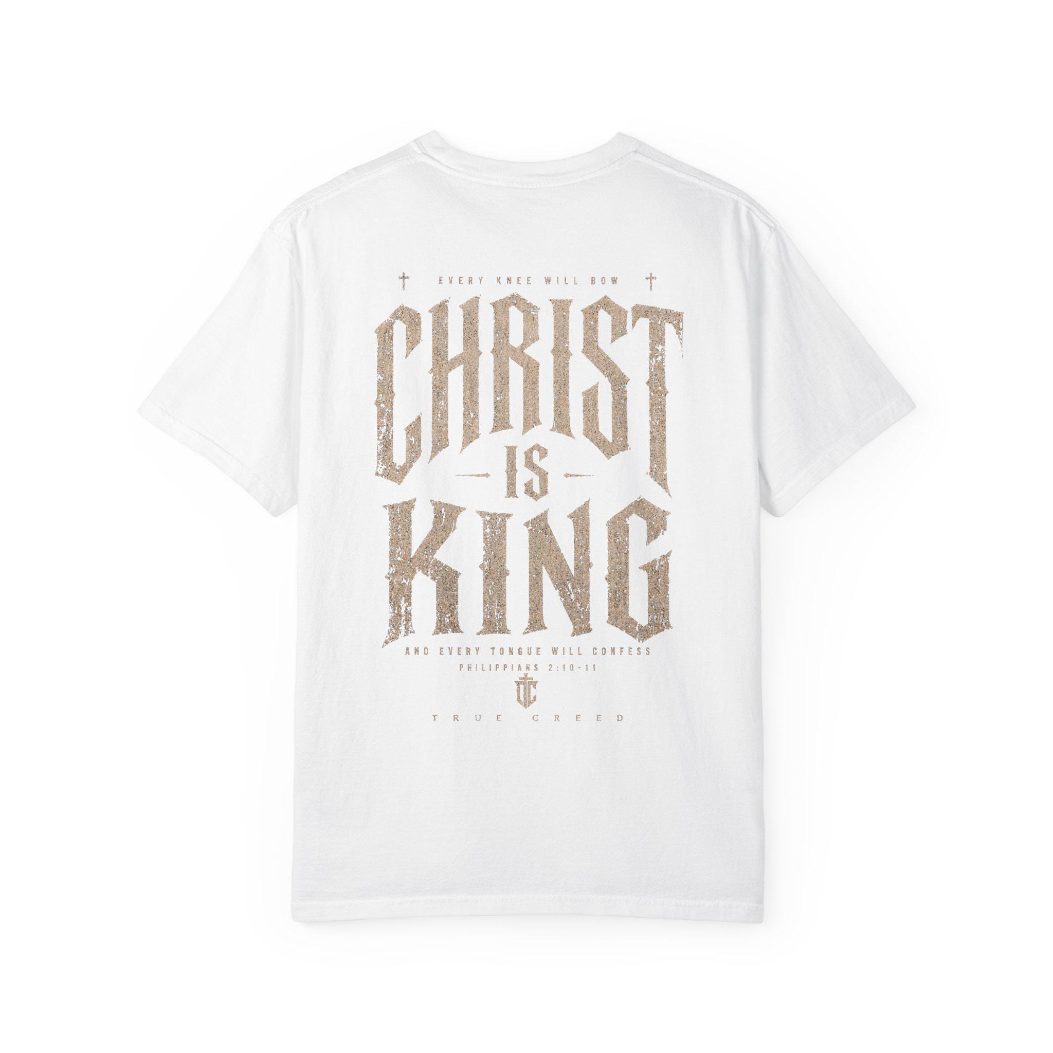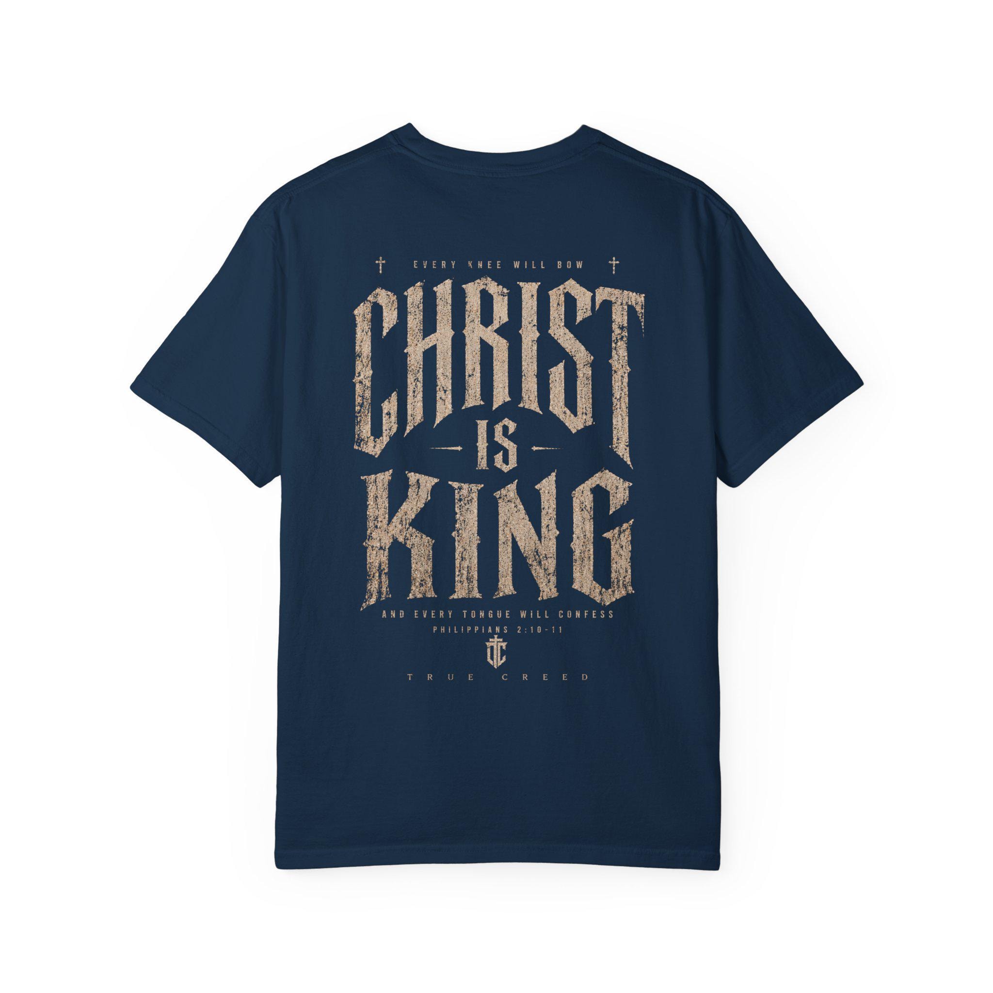 Designed with subtlety and bold faith in mind, a small, tasteful emblem sits on the chest, while the back boldly proclaims “CHRIST IS KING” in a weathered, vintage-inspired font—making a statement that is both confident and understated. Whether you're heading to church, worship gatherings, or simply expressing your faith daily, this faith shirt is a versatile addition to your wardrobe.
